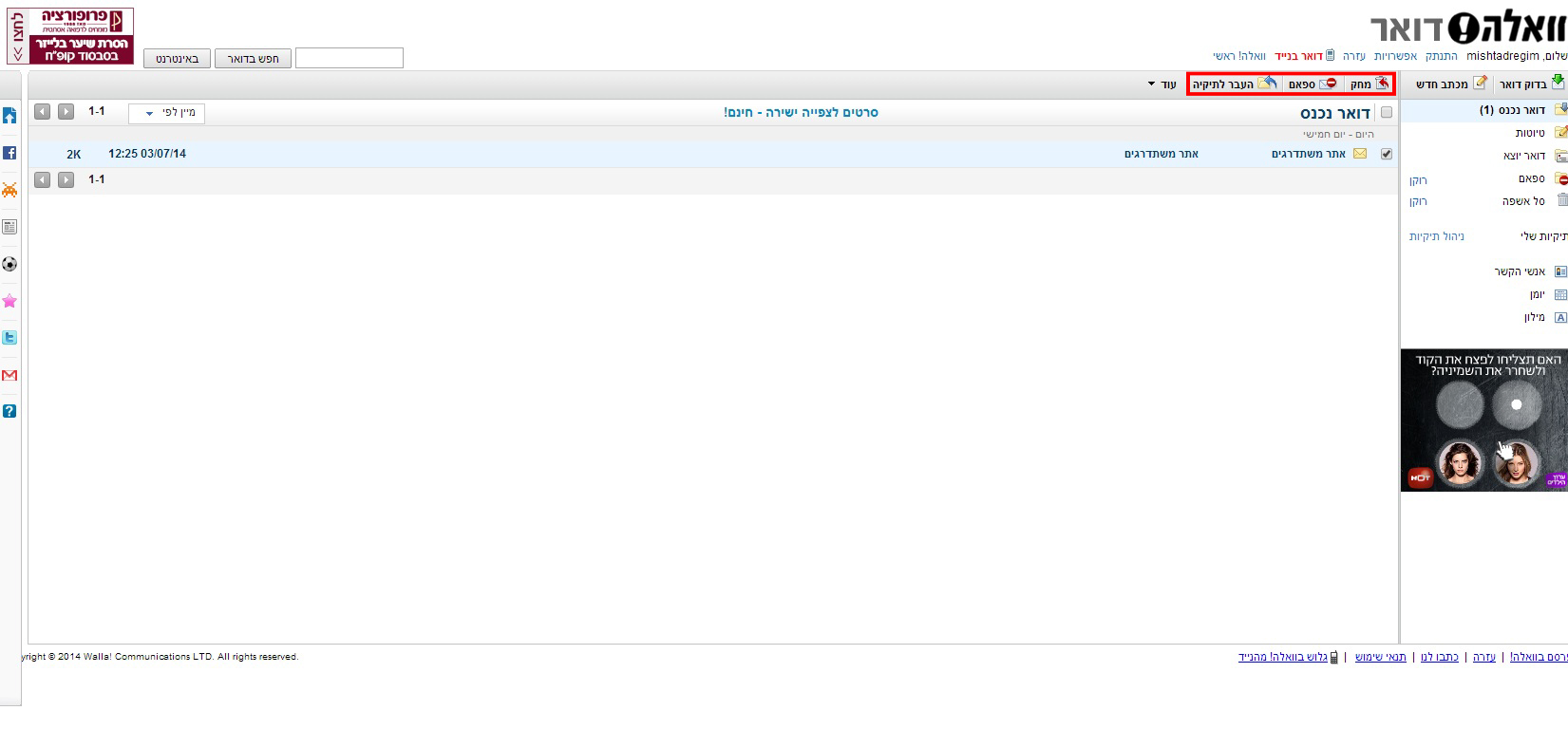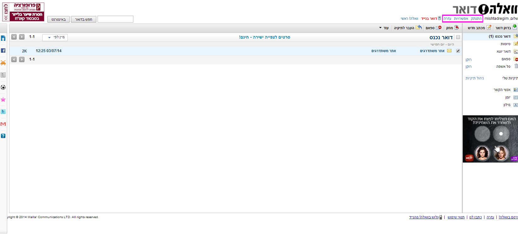 שימוש במייל של וואלה!